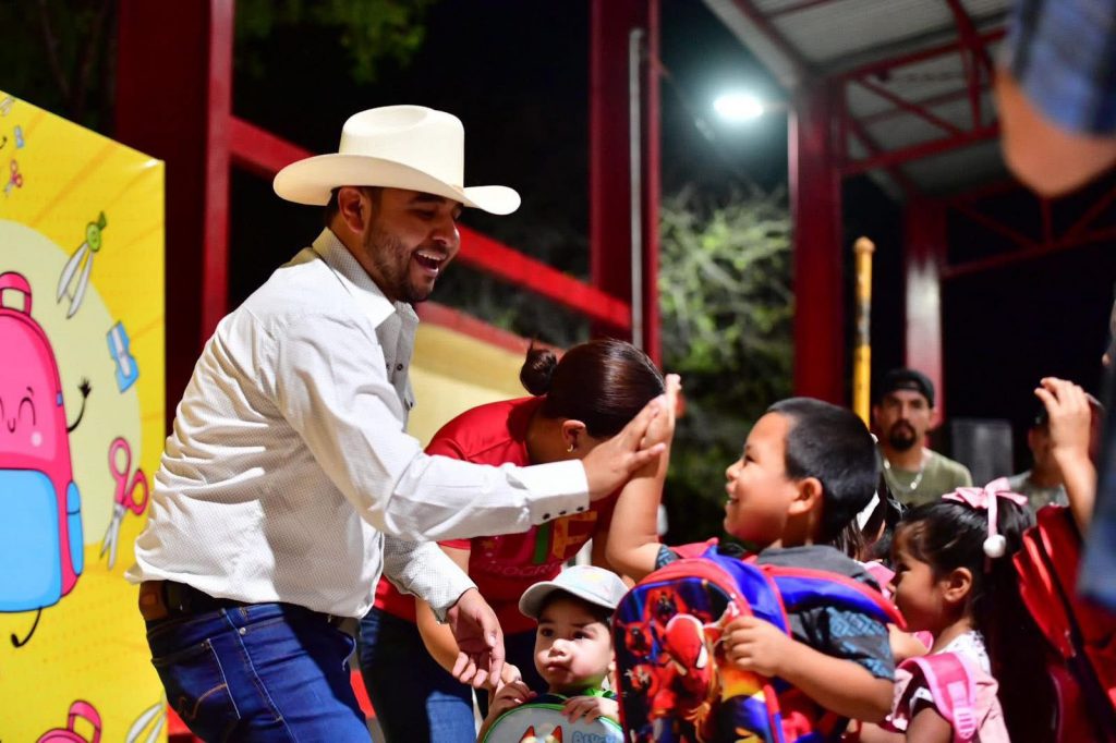 Progreso Coahuila.- El alcalde del Municipio de Progreso, Liquín Quintanilla, realizó en la Plaza de San José del Aura la primera entrega de mochilas para todos los niños desde educación inicial a sexto de primaria. En un emotivo evento en el que los pequeños fueron acompañados de sus papás, Liquín Quintanilla, junto con la Presidenta Honoraria del DIF Progreso Lupita Arana, entregaron las mochilas uno por uno a todos los pequeños estudiantes.