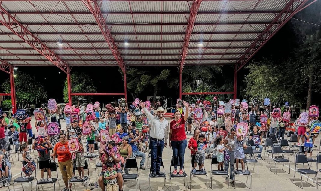 Progreso Coahuila.- El alcalde del Municipio de Progreso, Liquín Quintanilla, realizó en la Plaza de San José del Aura la primera entrega de mochilas para todos los niños desde educación inicial a sexto de primaria. En un emotivo evento en el que los pequeños fueron acompañados de sus papás, Liquín Quintanilla, junto con la Presidenta Honoraria del DIF Progreso Lupita Arana, entregaron las mochilas uno por uno a todos los pequeños estudiantes.